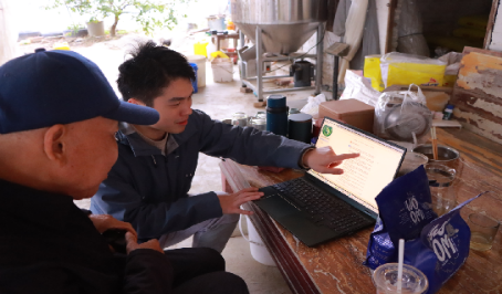 图2 “沼虾富农”团队成员教授虾农使用AI养殖助手