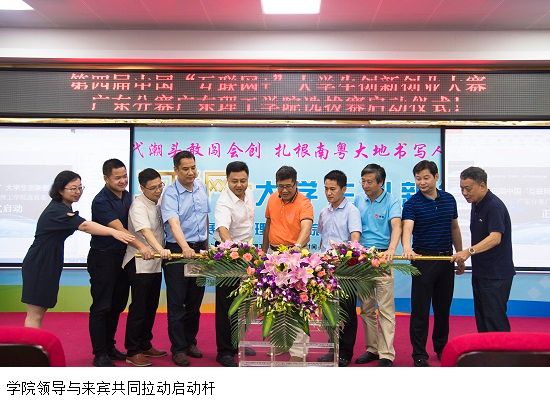随后,肇庆市科技局副局长谢炳权先生等8位来宾与我院叶念乔董事长、张湘伟院长一同拉动启动杆。第四届中国“互联网+”大学生创新创业大赛广东省分赛tyc太阳成9728集团选拔赛正式启动。