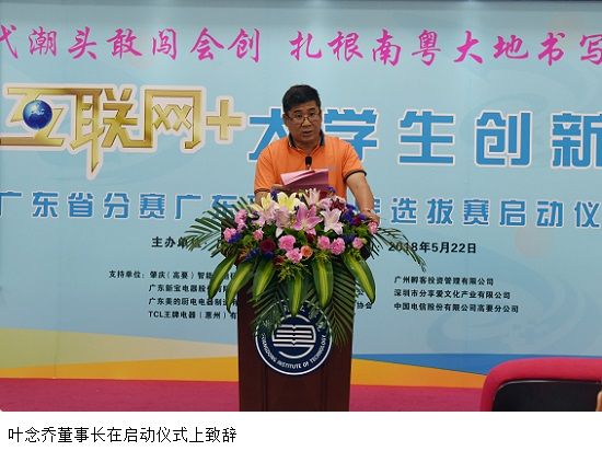 学院叶念乔董事长在致辞中对肇庆市、高要区各位领导、各兄弟院校代表出席活动表示衷心感谢。叶念乔董事长指出,学院全方位支持创新创业教育工作,明确把创新创业教育与专业教育有机融合起来,提倡师生共创,鼓励师生一同将科研成果转化为创业项目和产业项目。学院举办创新创业大赛,旨在进一步激发师生创新创业的热情,检验我院创新创业教育工作的成果,搭建大学生创新创业项目与社会投资对接平台,促进学生在创新创业中全面发展。叶董事长强调,高校的创新创业教育还必须适应和服务地方区域经济社会的发展和国家战略的需求,不是为了比赛而比赛。学院的创新创业教育必须要大力推进与政府、社会、行业、企业进行实质性的、高水平的交流合作,促进高校科研成果转化,形成校、政、企、行协同育人的良性机制。