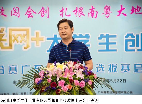 深圳分享爱文化产业有限公司董事长张波博士指出,创业不会一帆风顺,它是一个历经磨难的过程,希望创业者们经历磨难,初心不改。