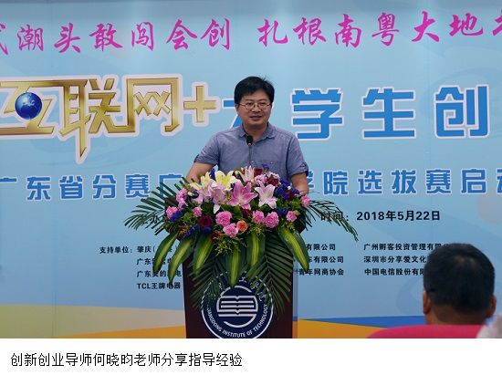 校内创新创业导师代表何晓昀老师在会上分享创新创业指导经验。何晓昀老师是2017年参加挑战杯创新创业大赛获特等奖项目的指导老师,他指出,作为创新创业导师,首先要明确自身的定位。创业创业导师应该是创业学生的服务者、陪伴者和共同成长者。学生的创业梦想需要老师去点燃,老师要积极激励学生参与到创业的热潮中去。