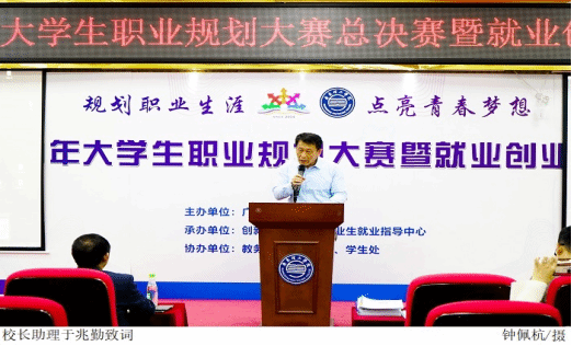 校长助理于兆勤教授发表了讲话。于教授介绍了竞赛的组织工作和就业创业指导活动月工作情况。于教授希望同学们在大学学习要根据自己的专业培养目标、学校办学特色和个人志向,制定好学业发展和职业规划,努力学习专业文化知识,参加创新创业实践活动。同时祝贺16个选手入围决赛,希望参赛人员赛出风采,赛出水平。