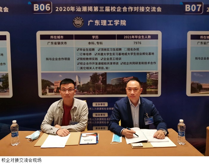 会上,我校与广东英联包装股份有限公司、亨特酒店用品(汕头)有限公司签订校企合作战略协议。随后,我校参会代表积极同与会的多家企业进行沟通,详细了解参会企业的用人需求,并向参会企业详细介绍了我校办学情况、专业设置和校企合作模式等内容,吸引了众多企业前来咨询,参会代表与部分企业就学校人才培养模式、企业用人需求、校企合作意向等问题进行了深入探讨。同时,也邀请了与我校专业匹配度高、竞争力强、有意向的企业参加我校的校园招聘会。
